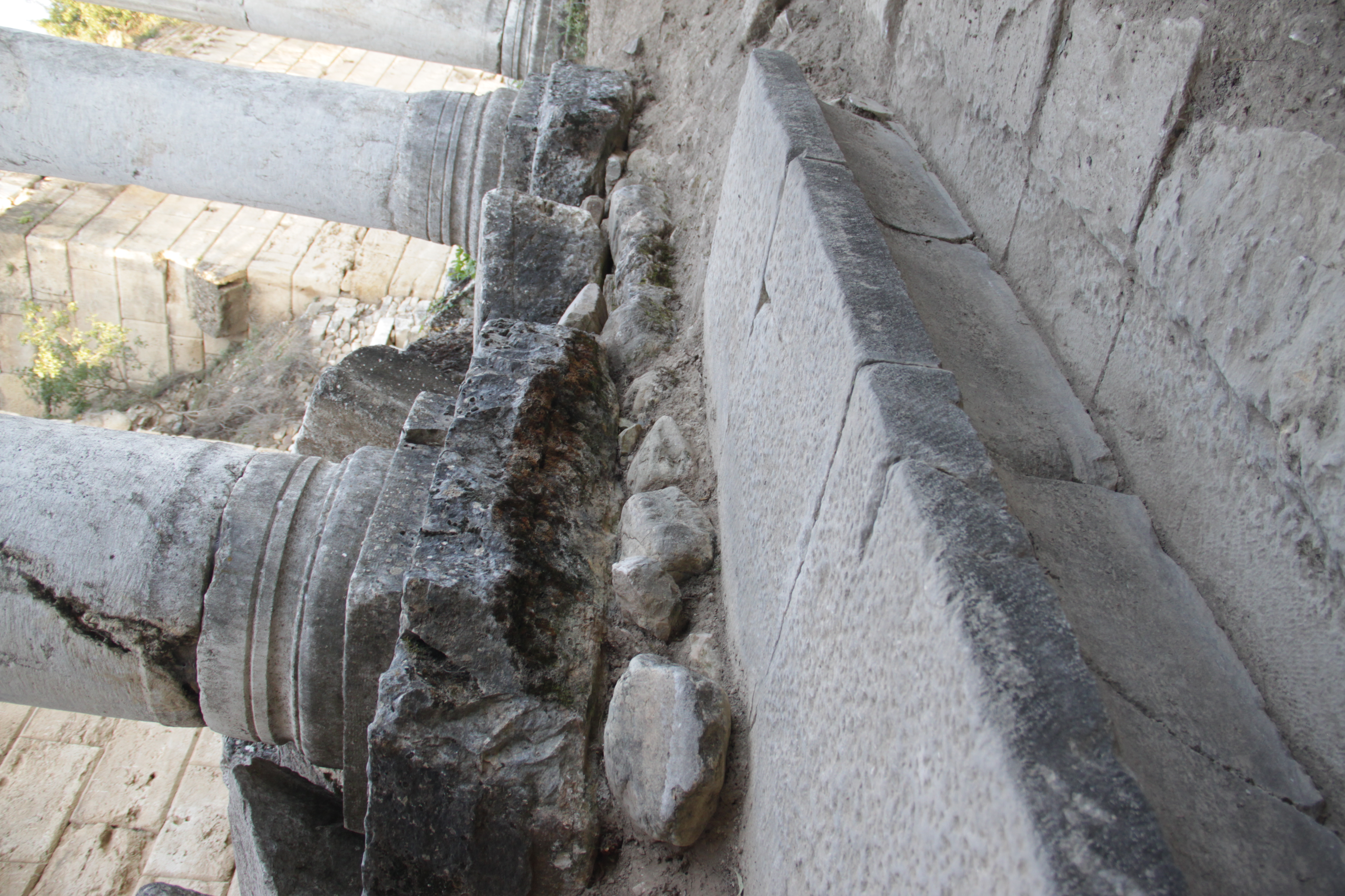 Stylobate raised on stones; rusticated. Possibly re-used/spoliated material.