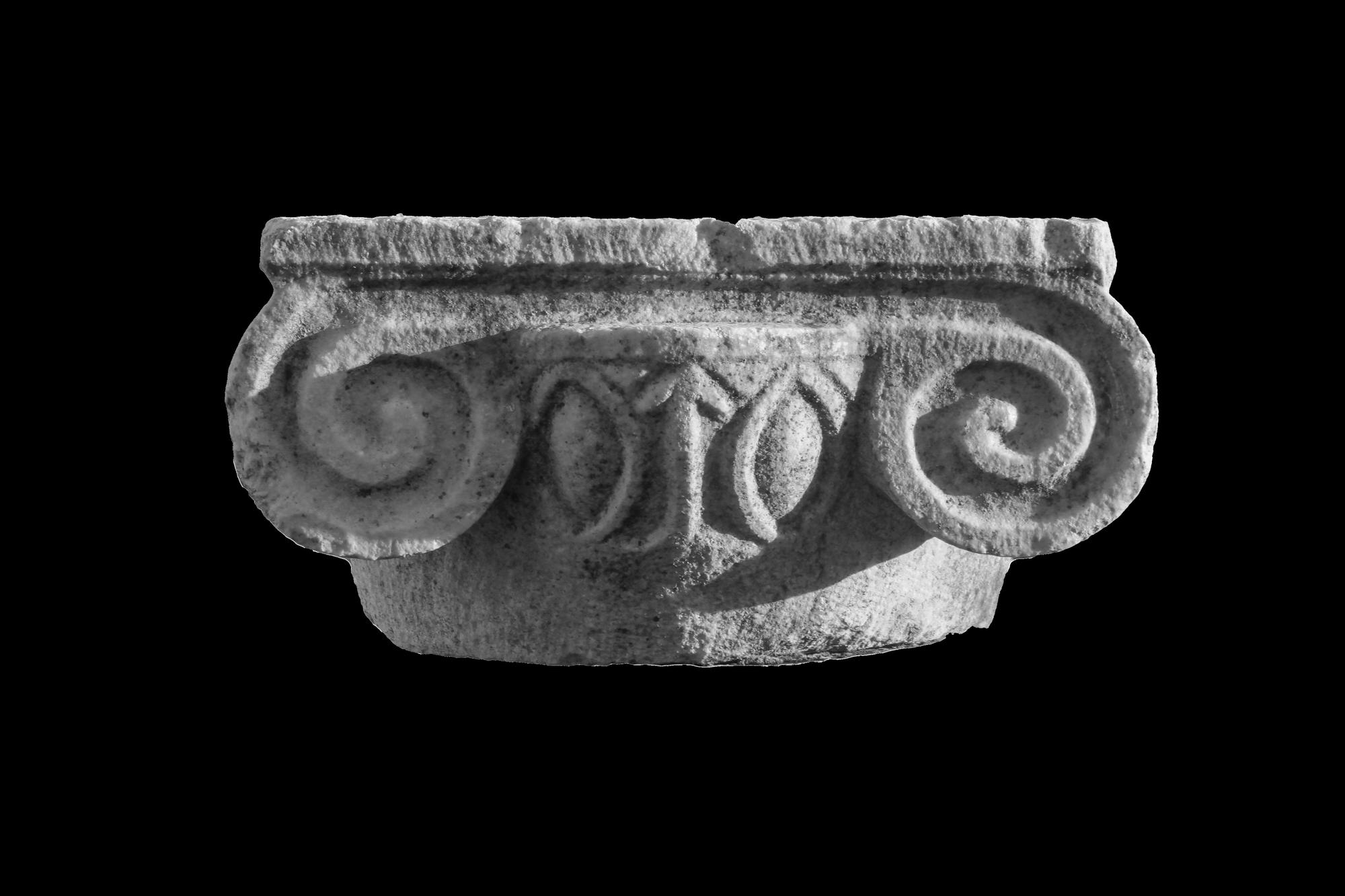 Abacus undecorated. Egg and dart pattern across each echinus consists of two eggs and one dart; a moulded border delineates the eggs and the darts point upward. Volutes turn two and a half times. Scale-like leaf pattern on the bolster, in the manner of SE2c, SE3c, SE5c–SE7c, SE12c, SE15c, SE17c and…